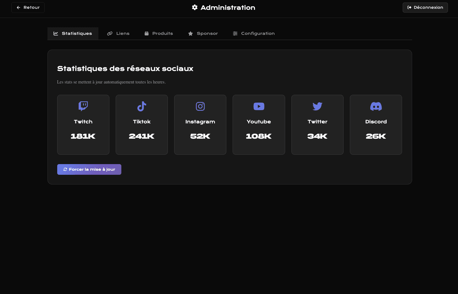 Créer un site officiel link-in-bio pour le streamer Twitch ESKc, permettant de centraliser l’ensemble de ses liens (réseaux sociaux, affiliations, sponsors) tout en affichant des statistiques Twitch dynamiques (followers, compteurs).